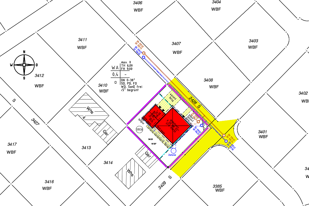 Der Lageplan zum Baugesuch ist eine maßstäbliche Zeichnung, die das Grundstück, die geplante Bebauung sowie Abstände, Erschließung und Nutzung darstellt und damit eine Grundlage für die baurechtliche Prüfung und Genehmigung des Bauvorhabens bildet.